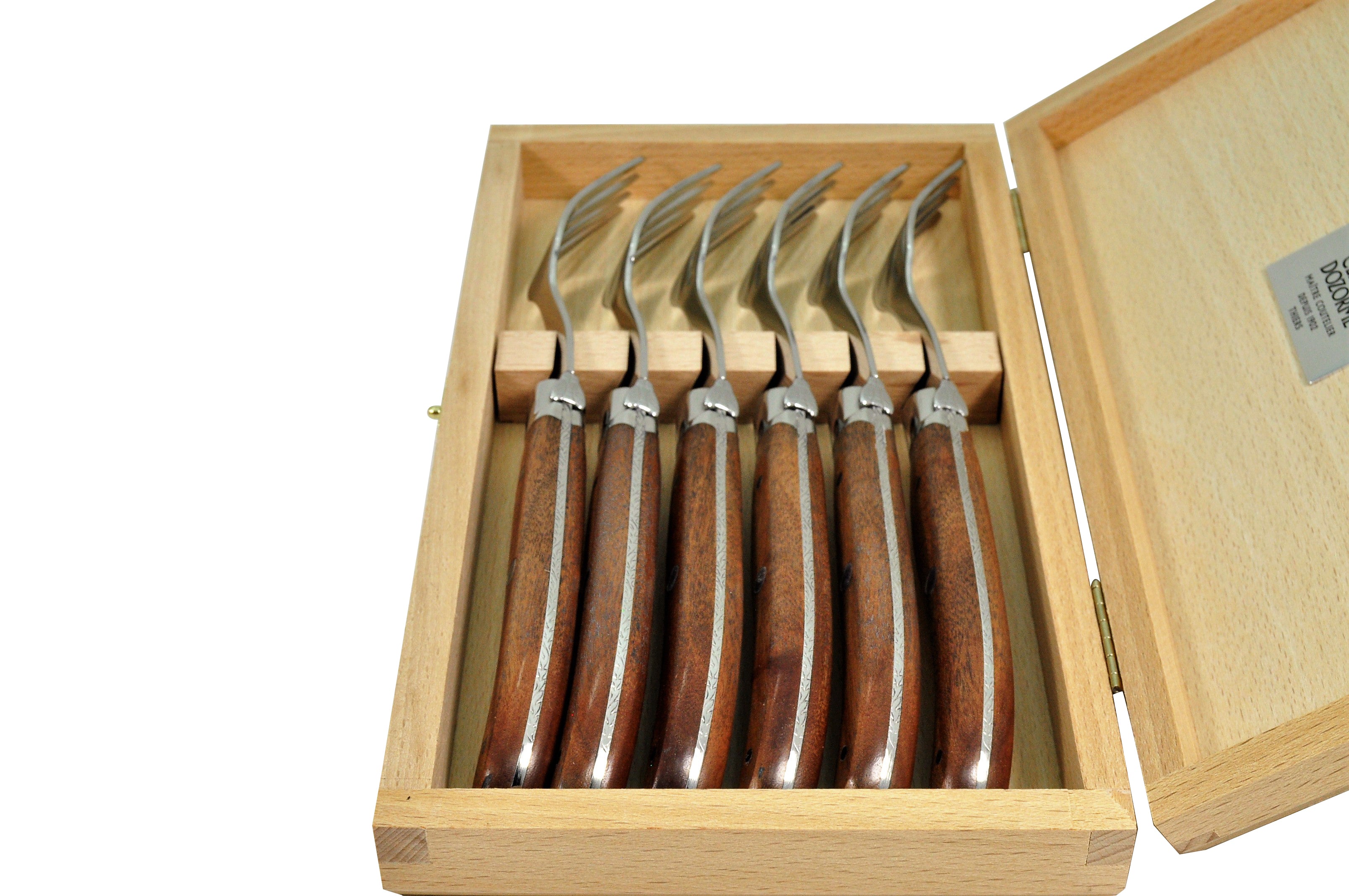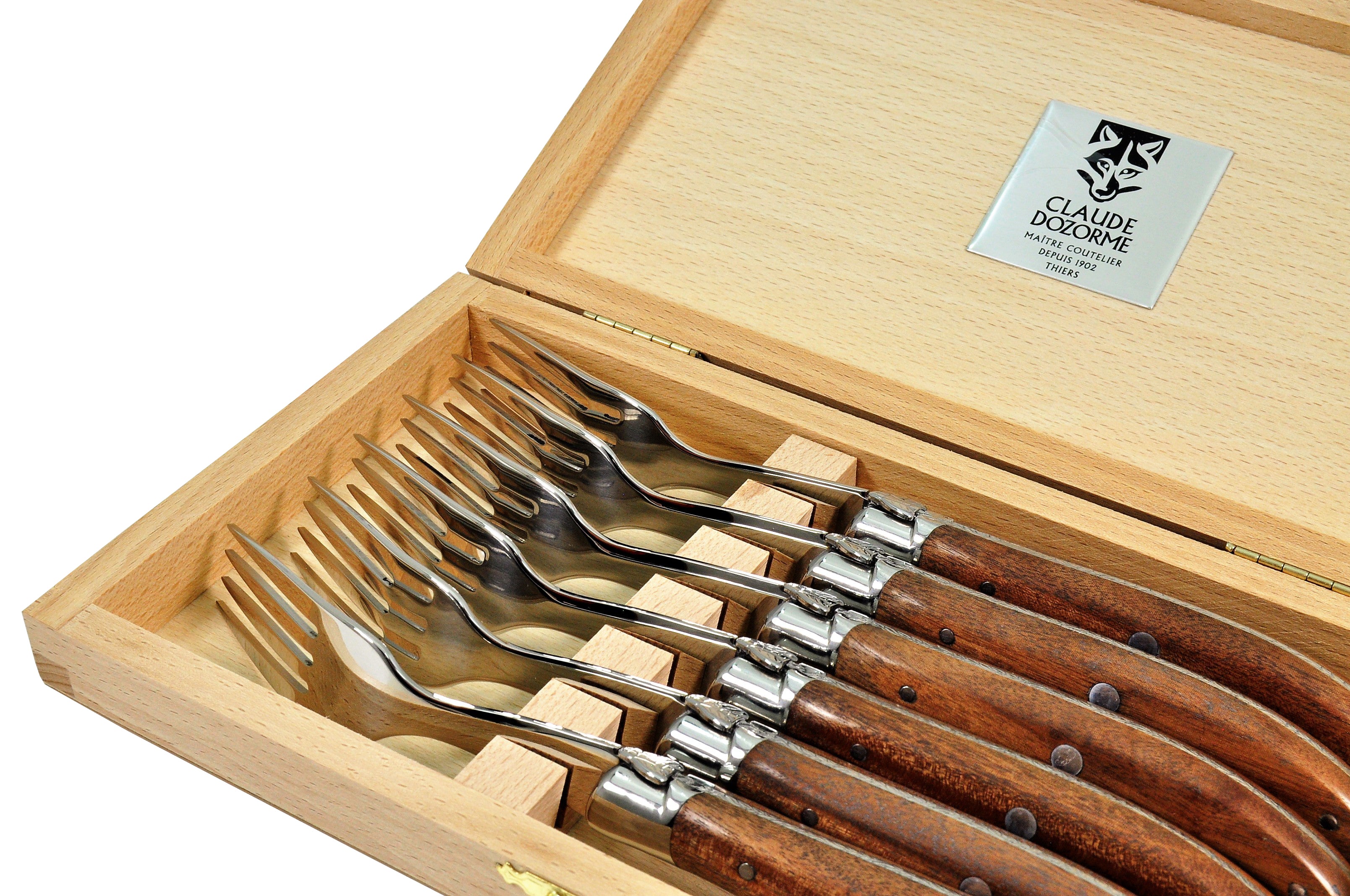 Claude Dozorme Stainless Steel 6-Piece Fork Set with Exotic Wood Handle