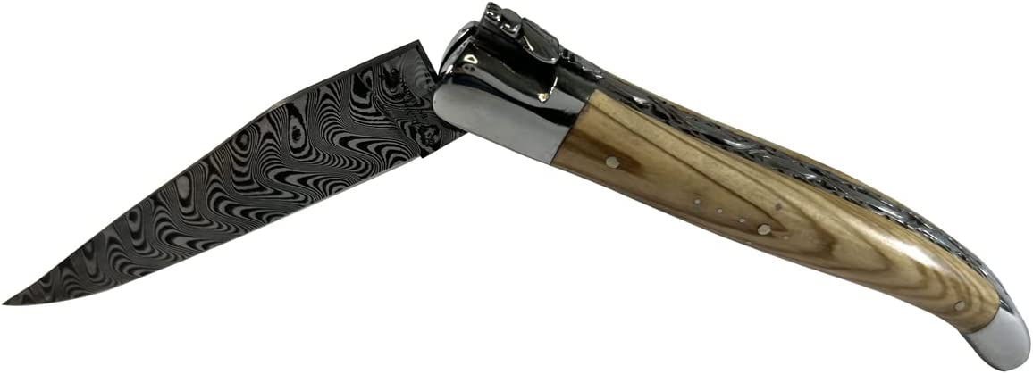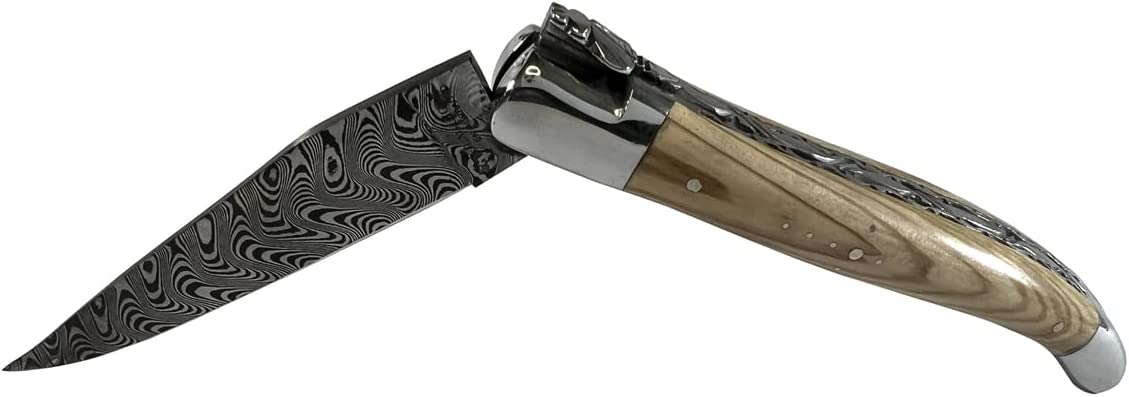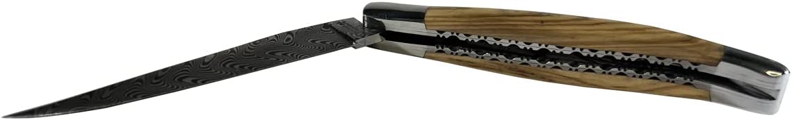 Laguiole en Aubrac Damascus Steel Knife with Olive Wood Handle, 4.75-Inch