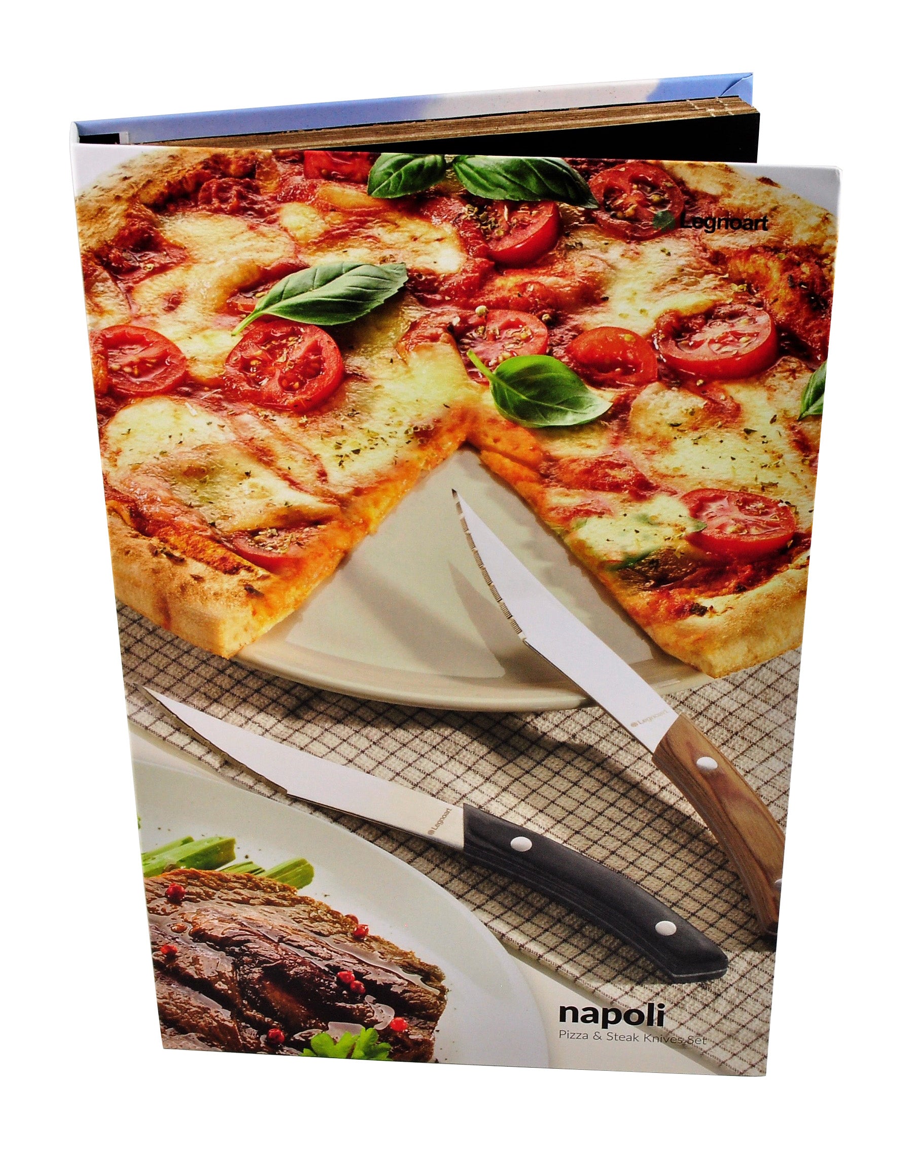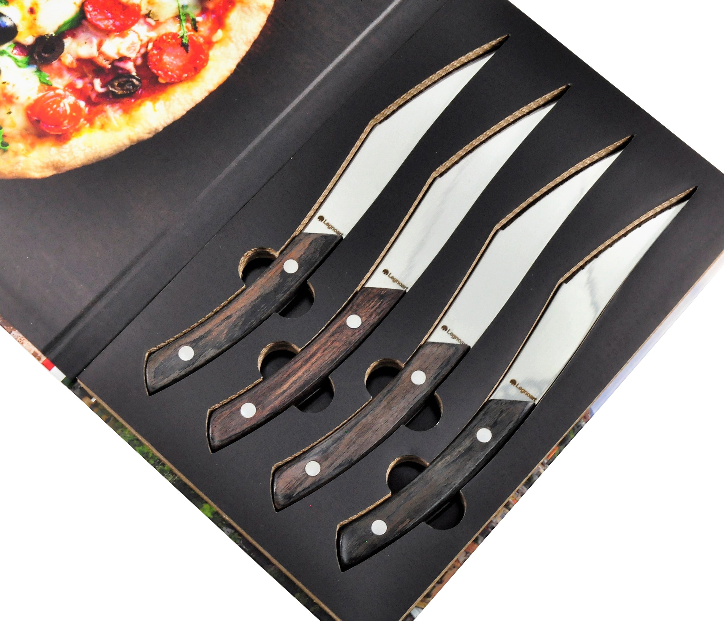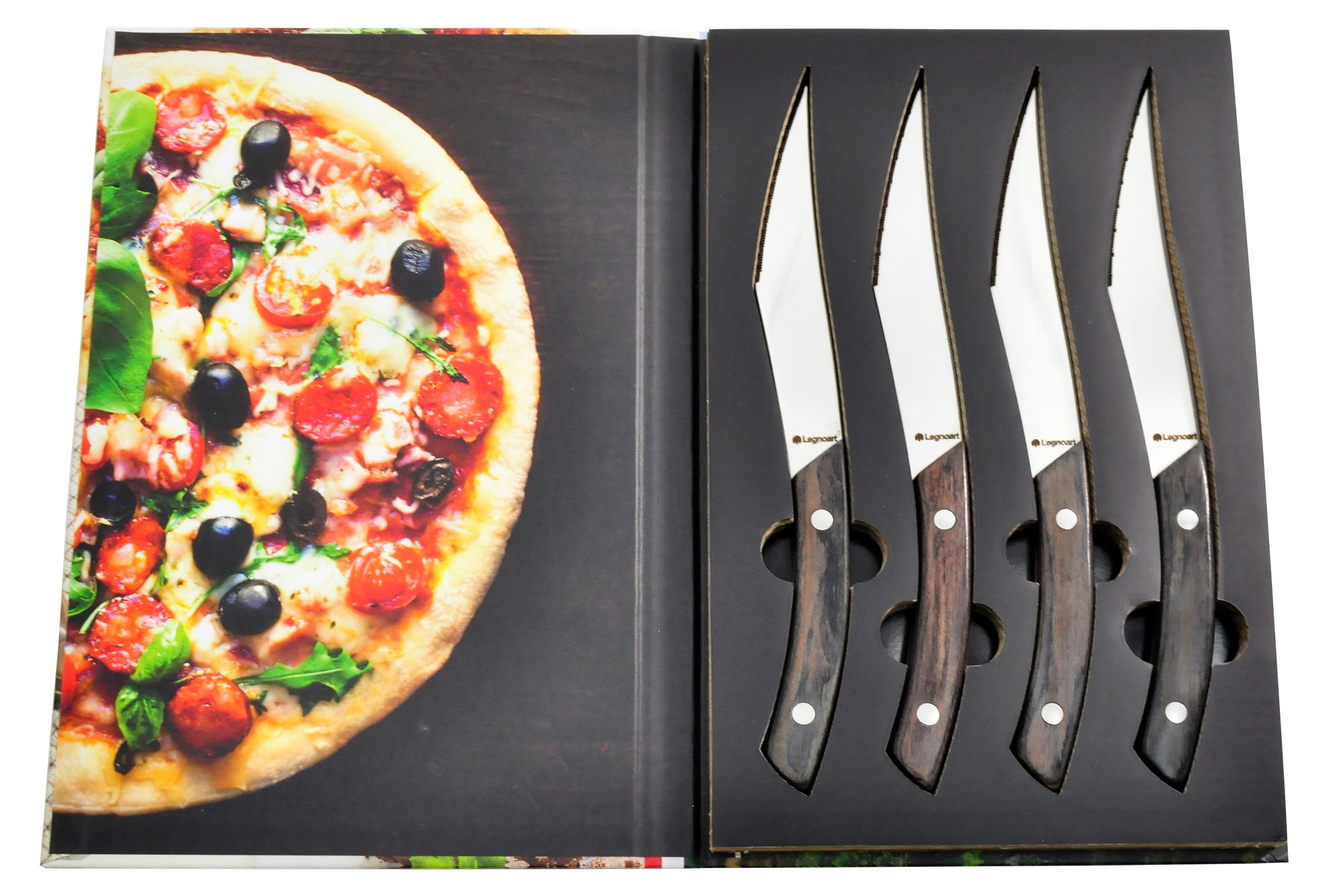 Legnoart Napoli 4-Piece Stainless Steel Pizza and Steak Knife Set with Dark Wood Handle