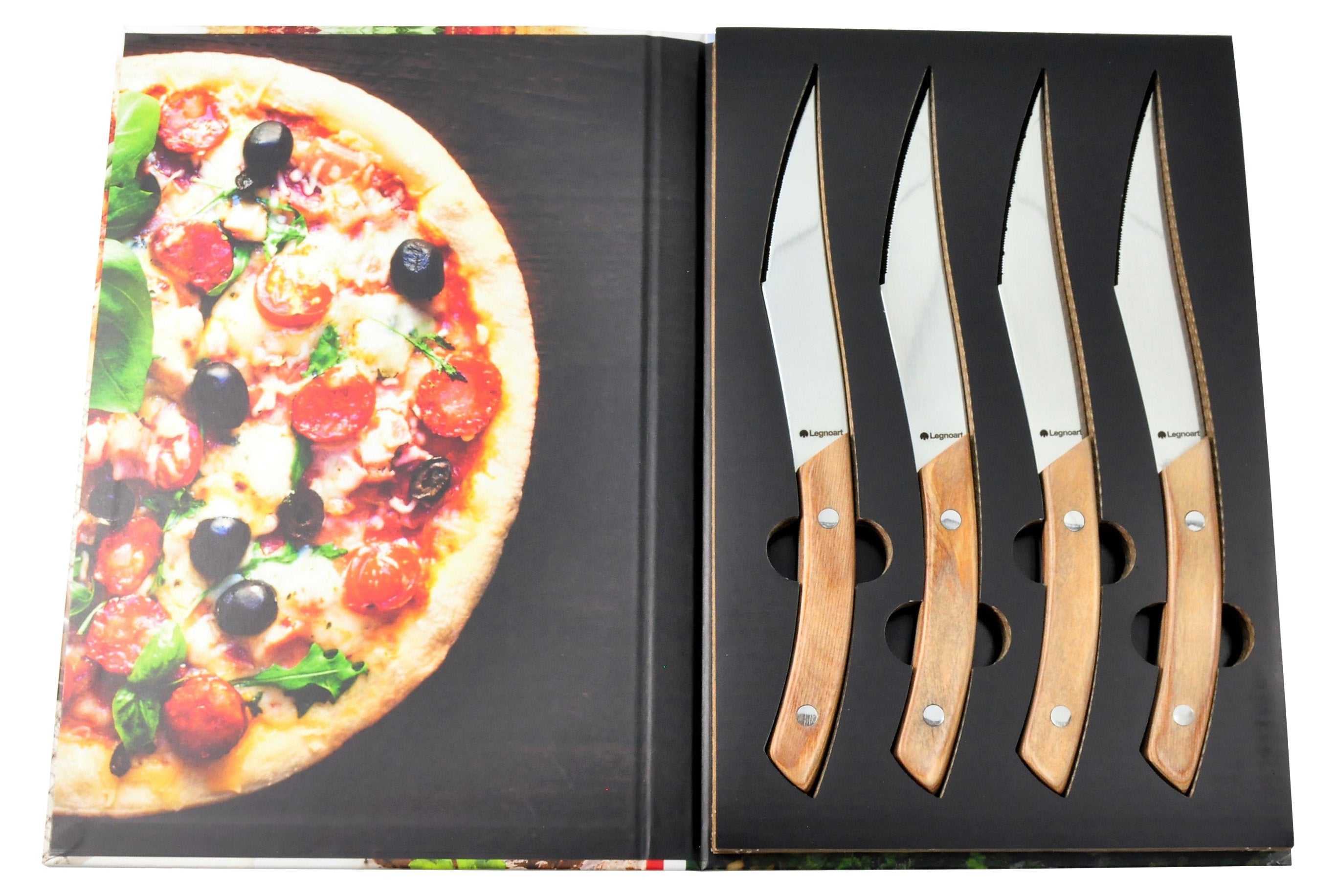 Legnoart Napoli 4-Piece Stainless Steel Pizza and Steak Knife Set with Light Wood Handle