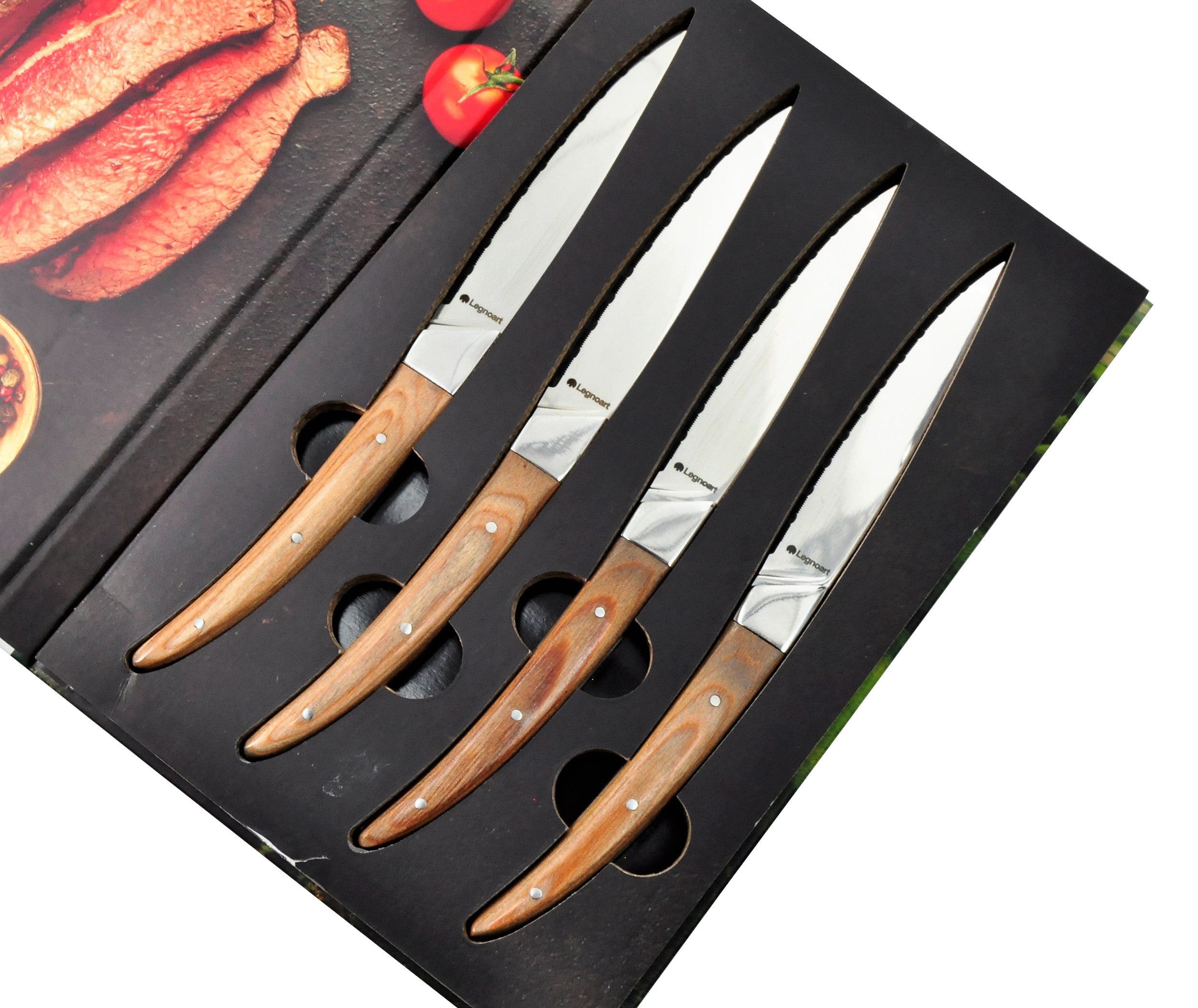 Legnoart Porterhouse 4-Piece Steak Knife Set with Light Wood Handle