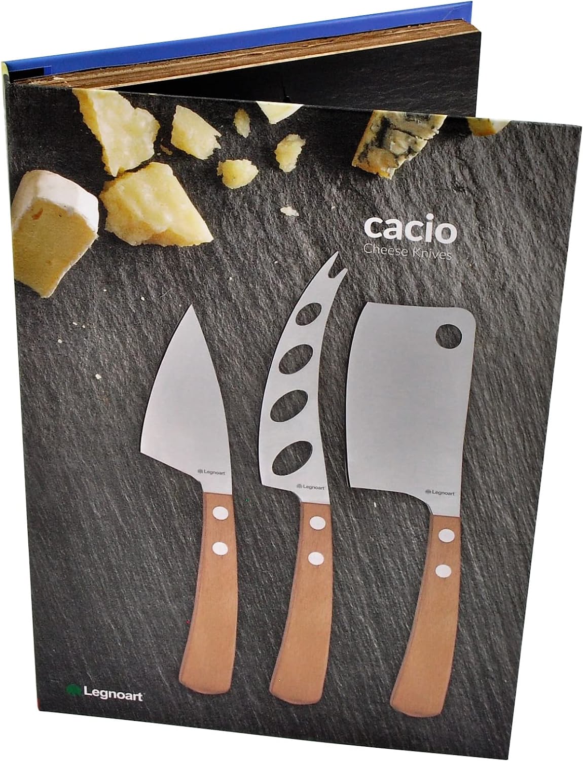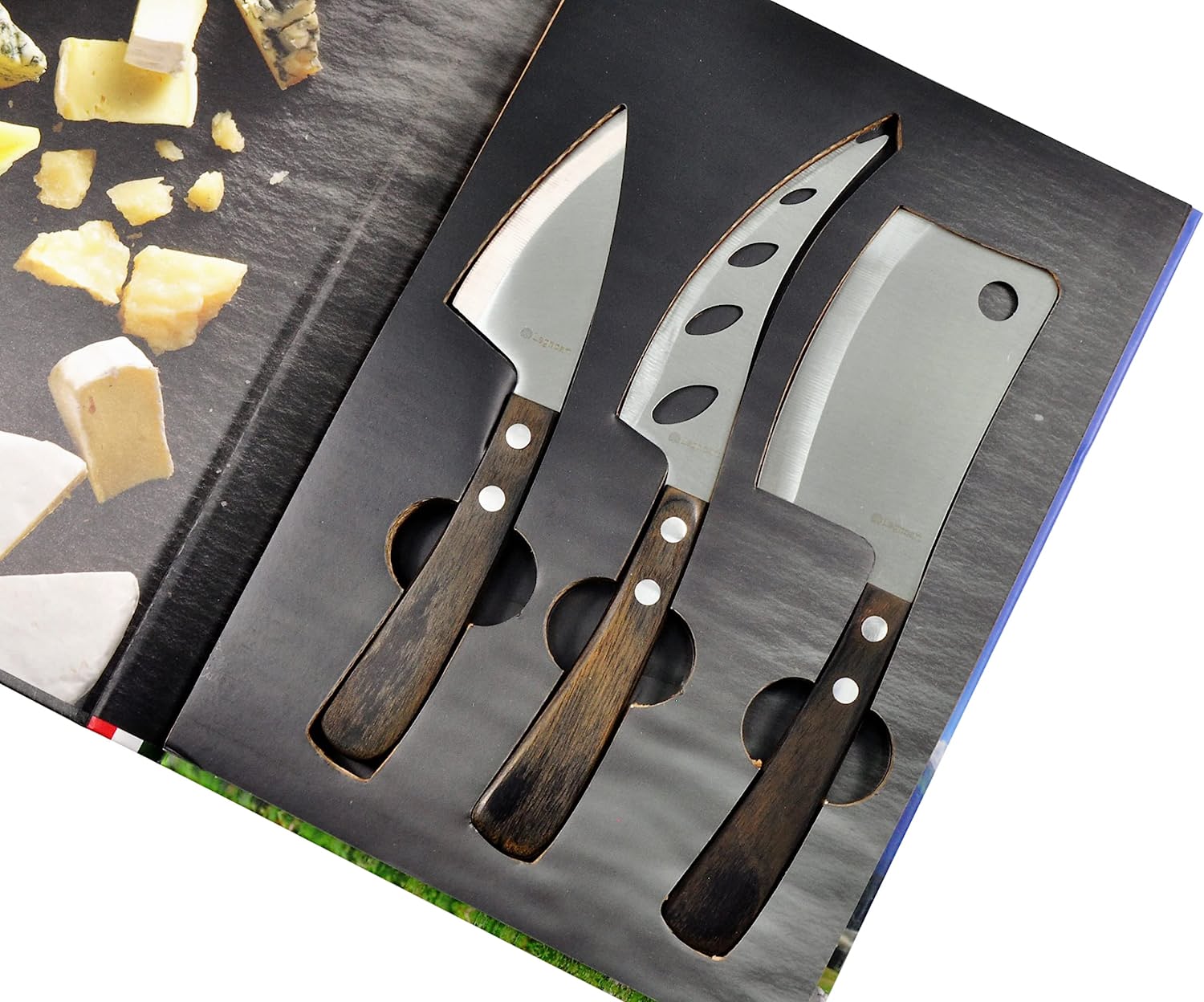 Legnoart Stainless Steel Latte Vivo 3 Piece Cheese Knife Set with Dark Wood Handle