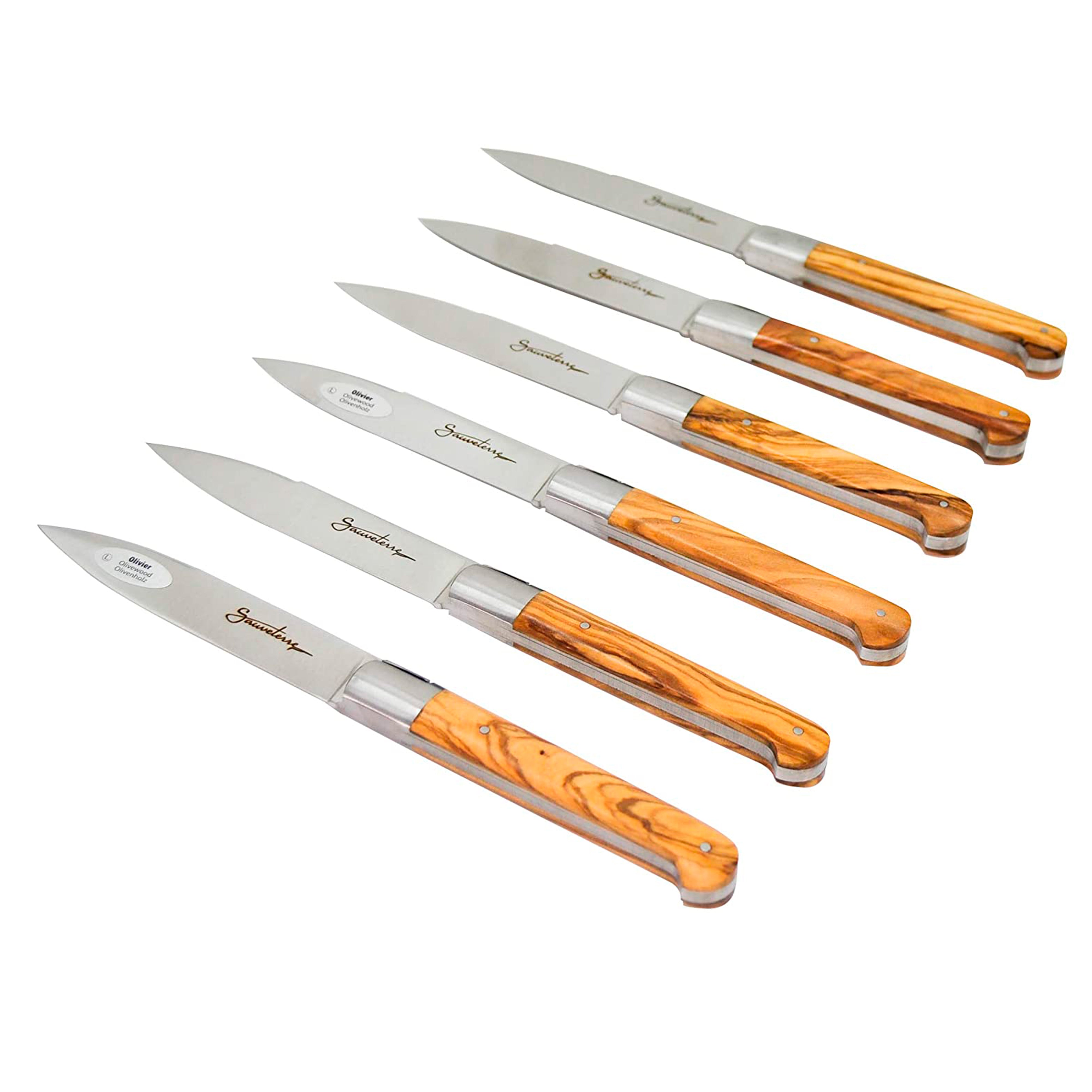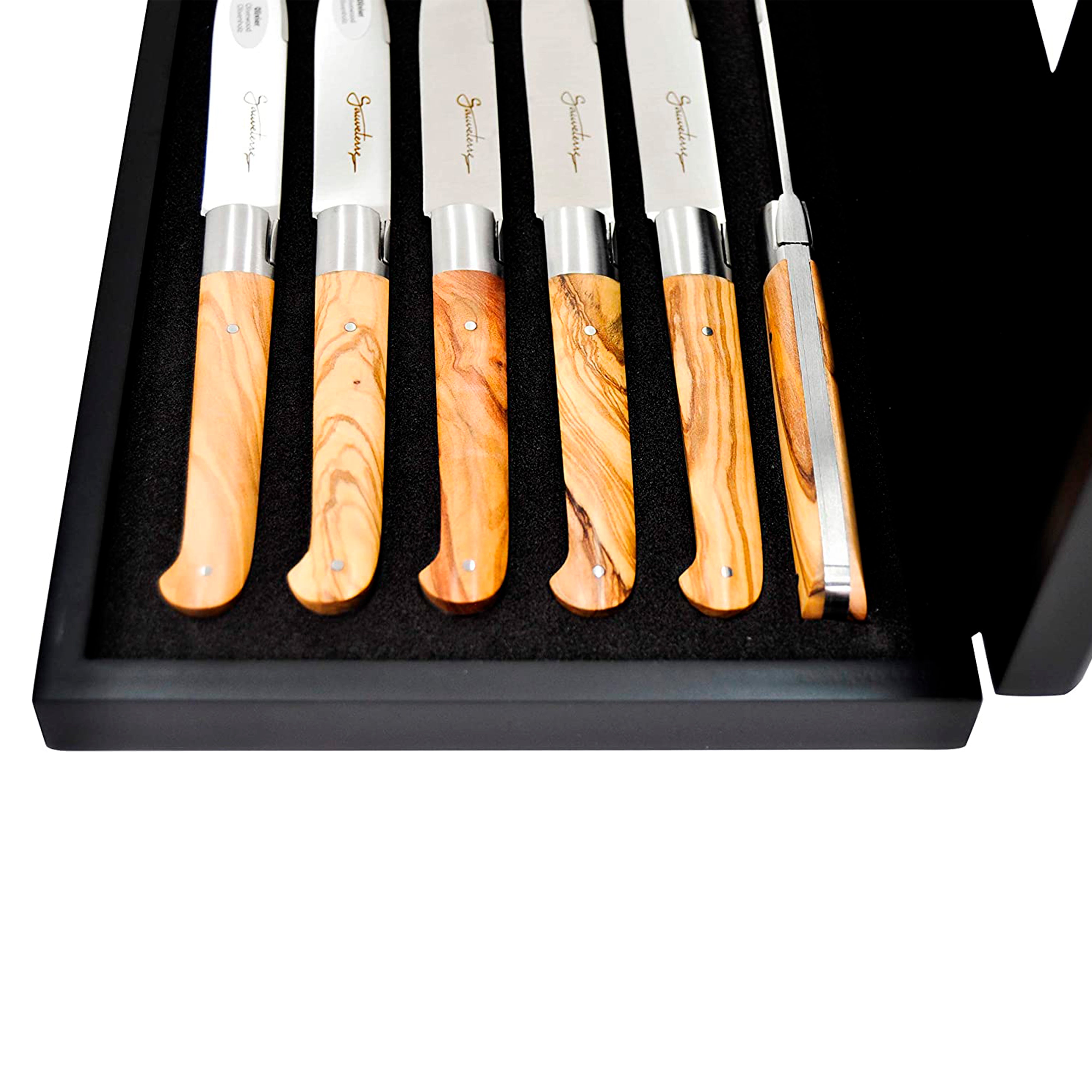 Sauveterre Stainless Steel 6-Piece Steak Knife Set with Olivewood Handle