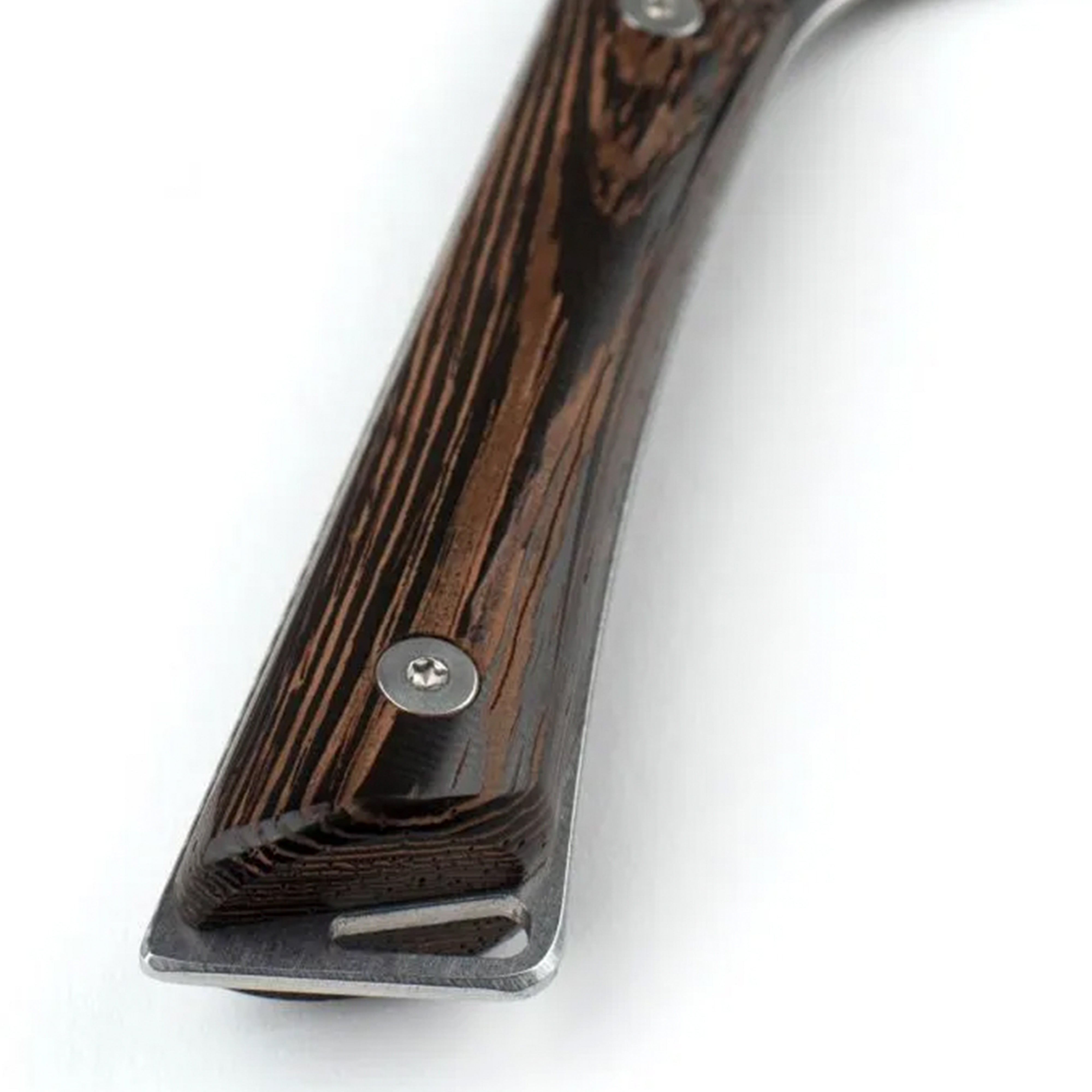 - It has a blade made of AUS10A; stainless steel with a high carbon content and is resistant to corrosion, has hardness and wear resistance. It also has added vanadium which refines the steel grain and allows for a 16° sharp edge.