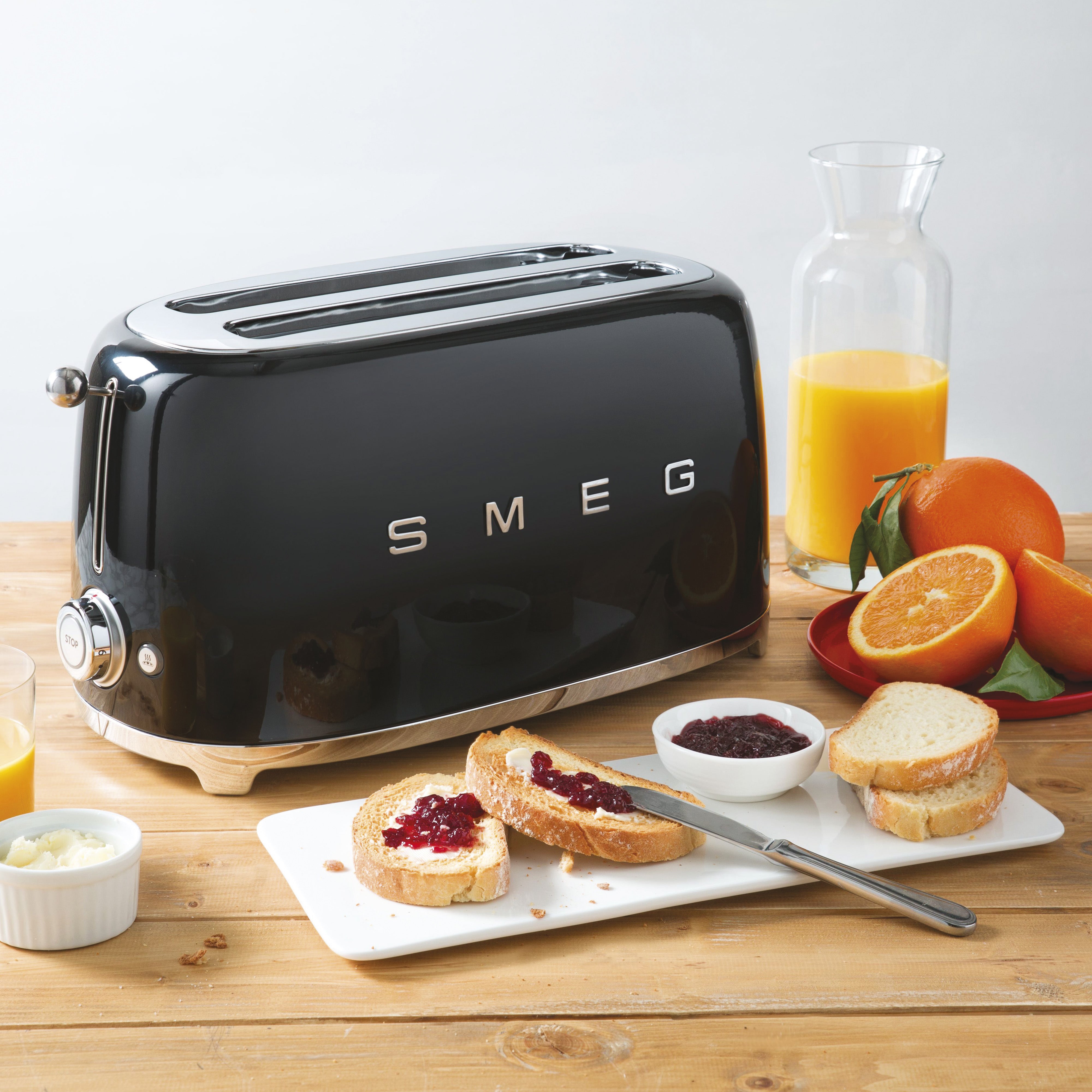 Smeg 50's Retro Style Aesthetic 4x2 Slice Black Toaster
