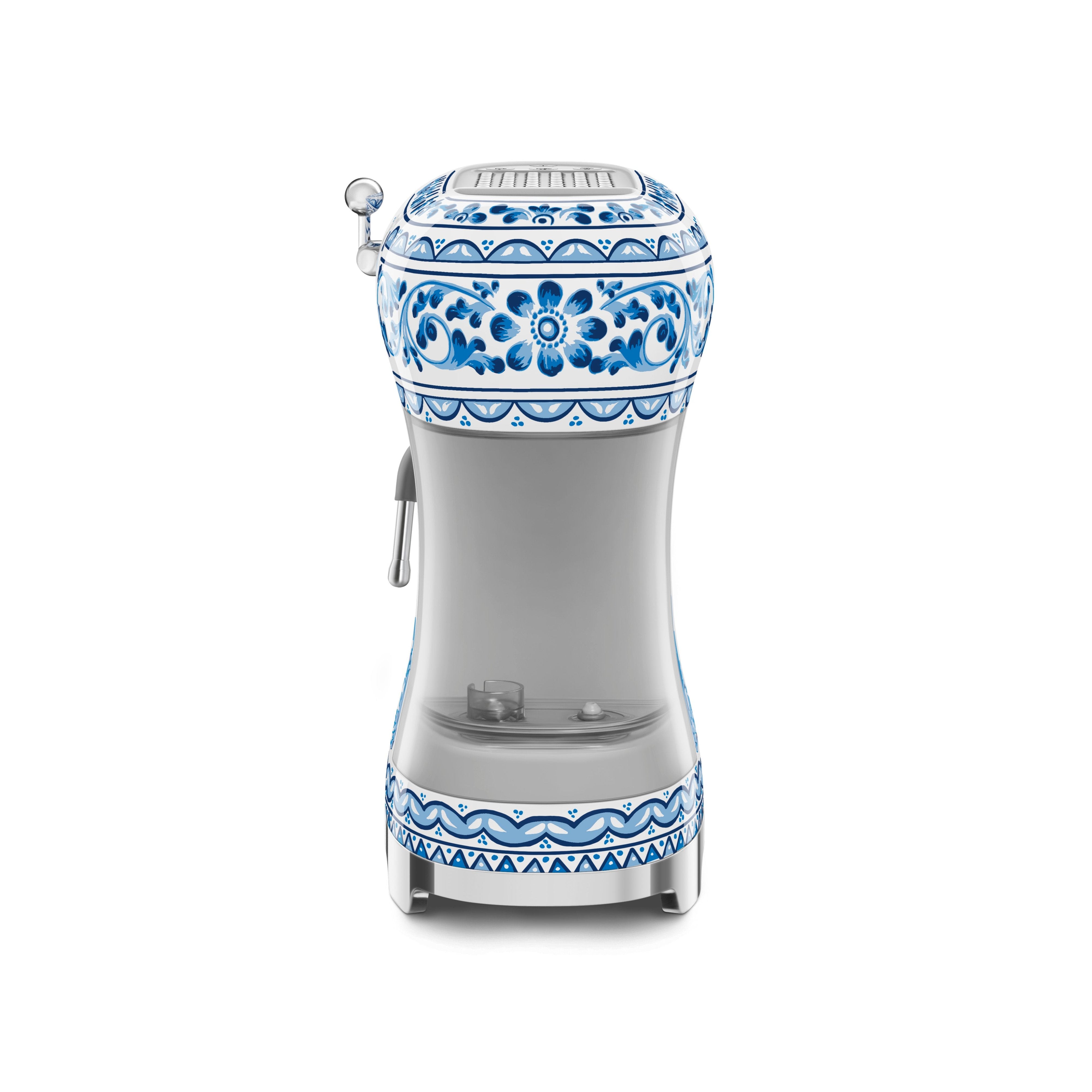 Experience the perfect blend of fashion and functionality with the Smeg Dolce and Gabbana Blu Mediterraneo Manual Espresso Machine.