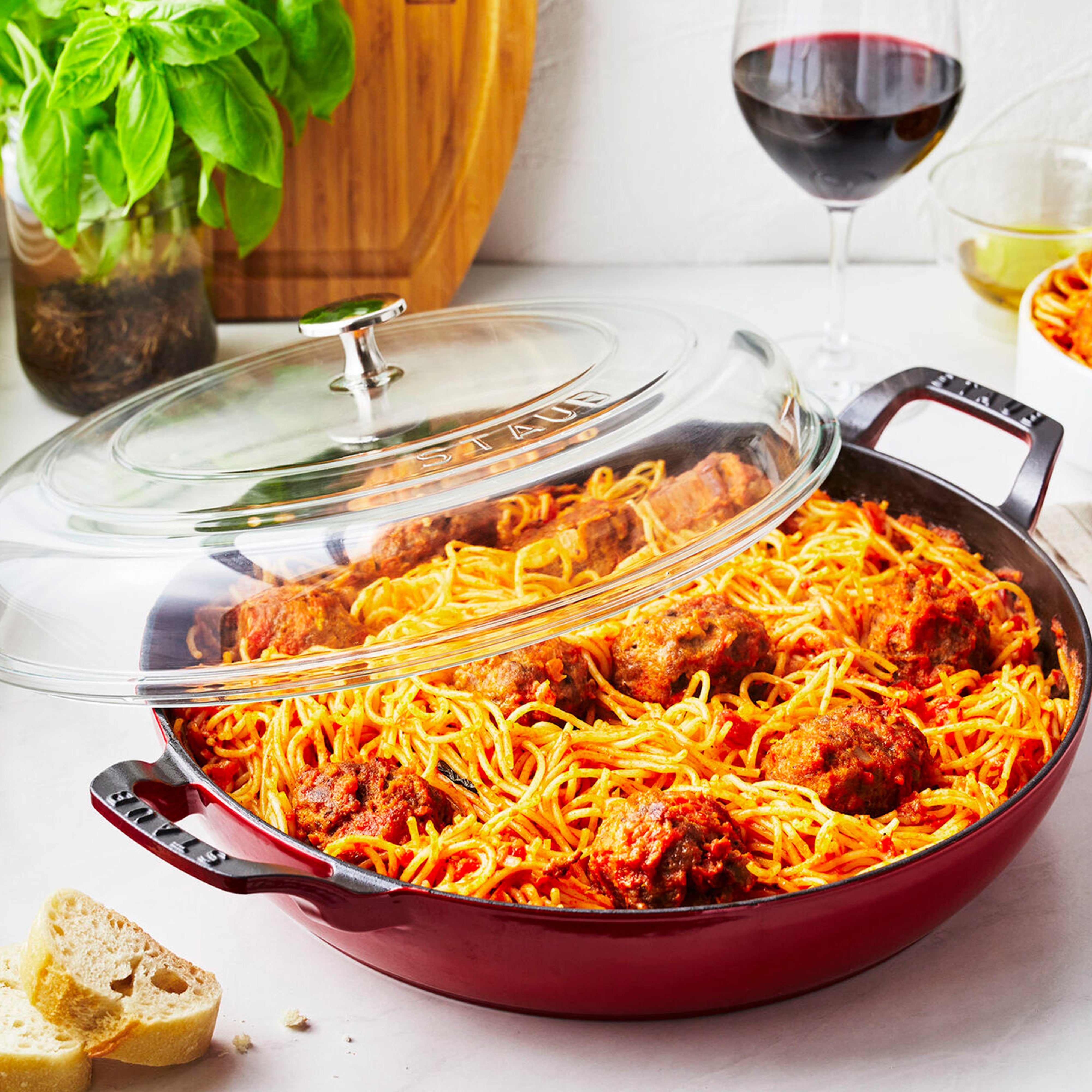 Staub Cast Iron Cherry Braiser with Glass Lid, 3.5-Quart