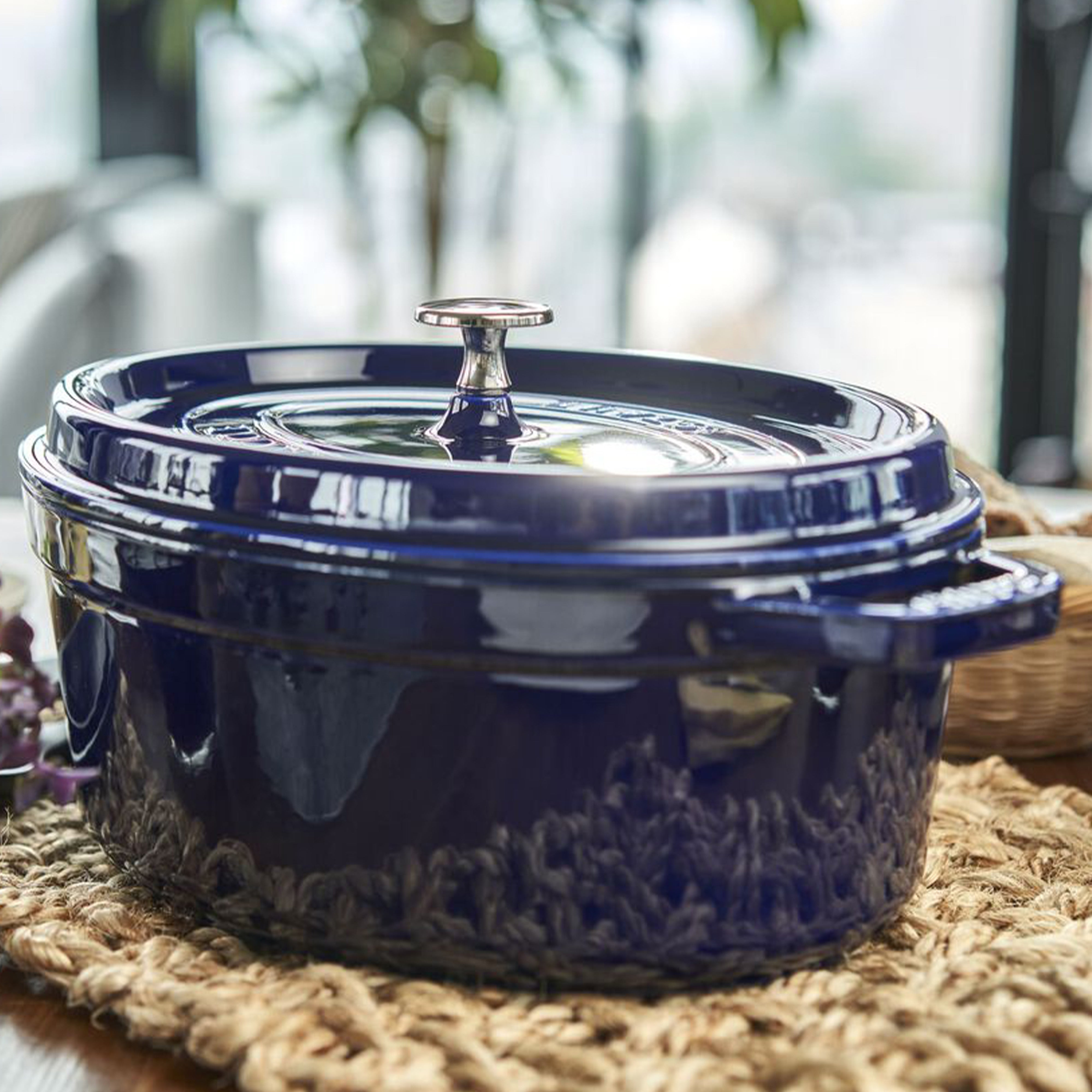 Staub Cast Iron Dark Blue Oval Cocotte, 7-Quart