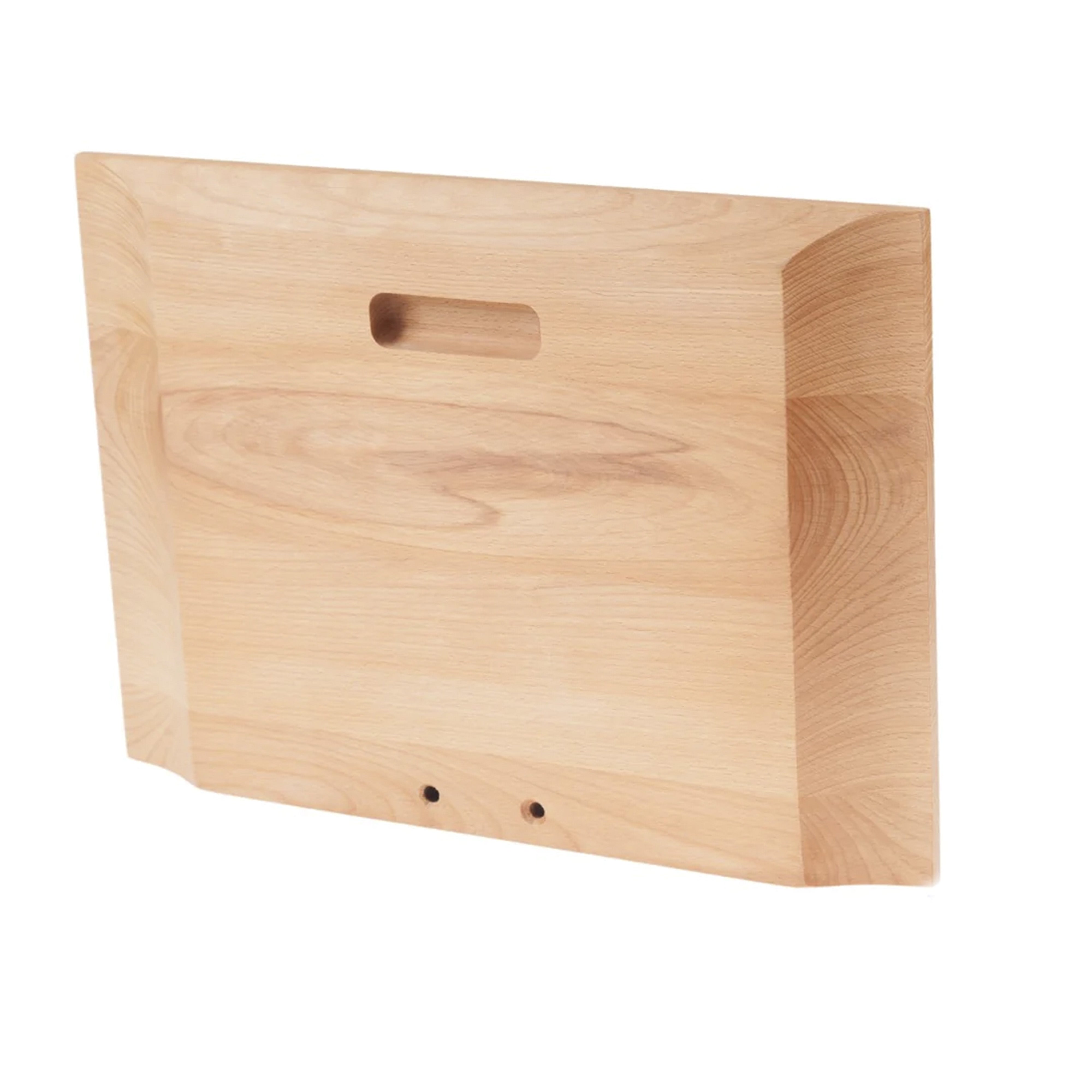 - It comes with a beechwood cutting board that has an exceptional finish that makes it easy to cut and present meats. It features a pouring spout that naturally directs juices to prevent spillage.