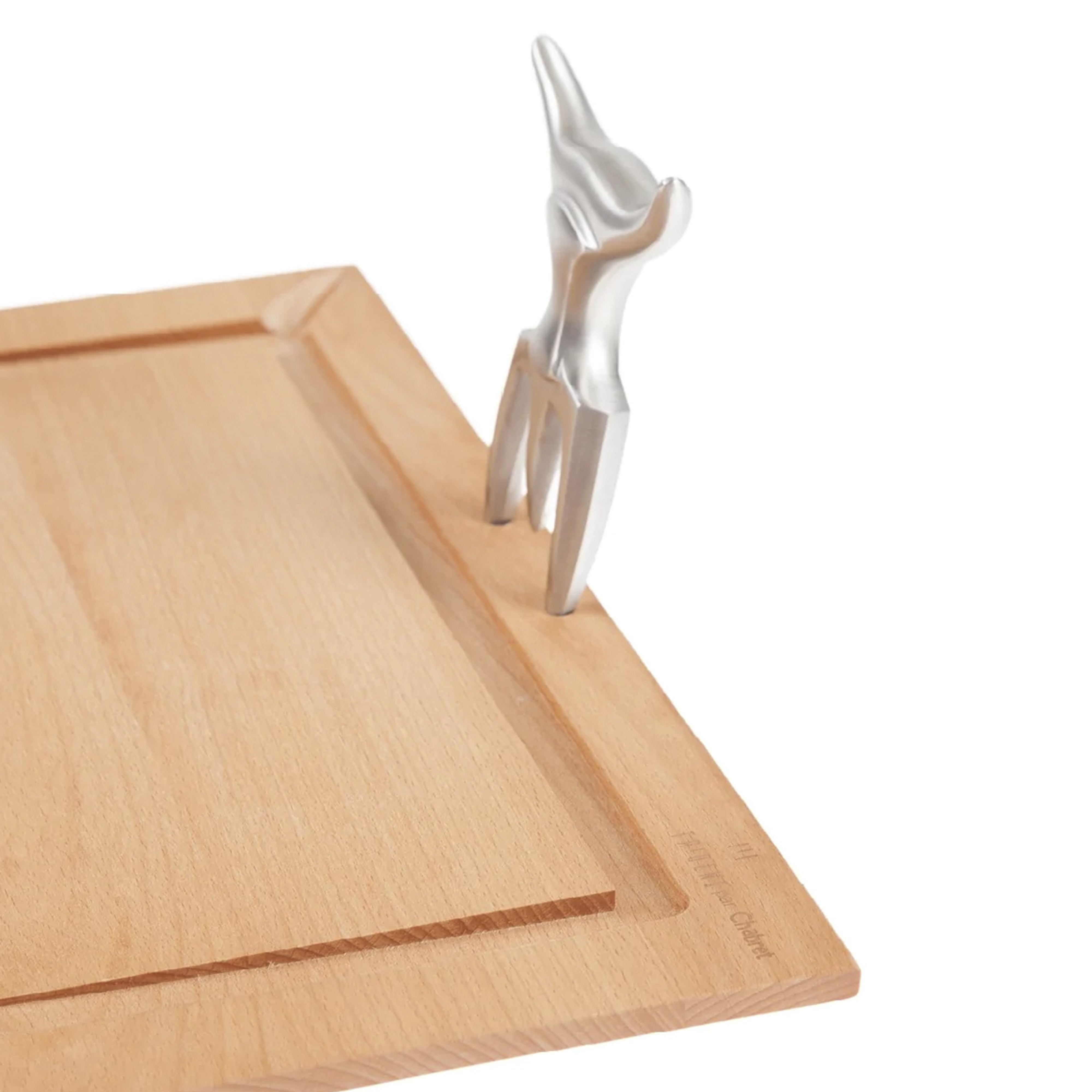 Tridens Hand Crafted Brushed Stainless Steel Fork With Beechwood Cutting Board