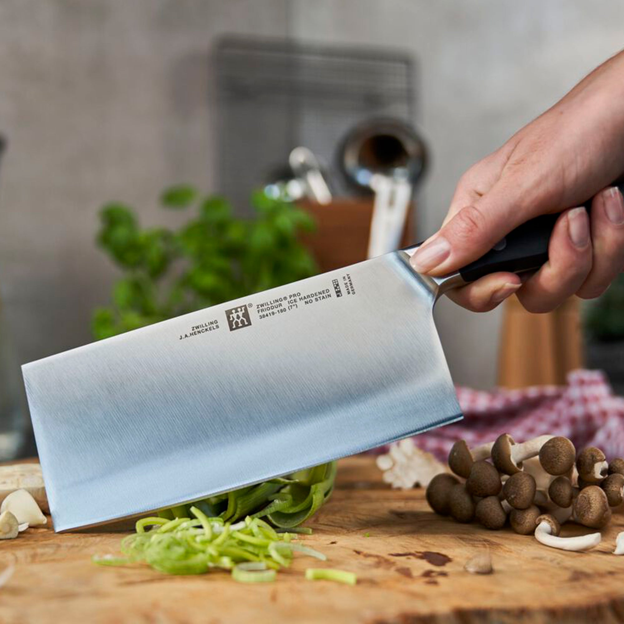Featuring a precision-honed blade and laser-controlled edge that ensures ideal cutting angle for sharpness and durability, the Zwilling Pro Stainless Steel Chinese Chef's Knife/Vegetable Cleaver is suitable for cutting, chopping and dicing. Ideal for preparing meat, fish, vegetables and herbs.